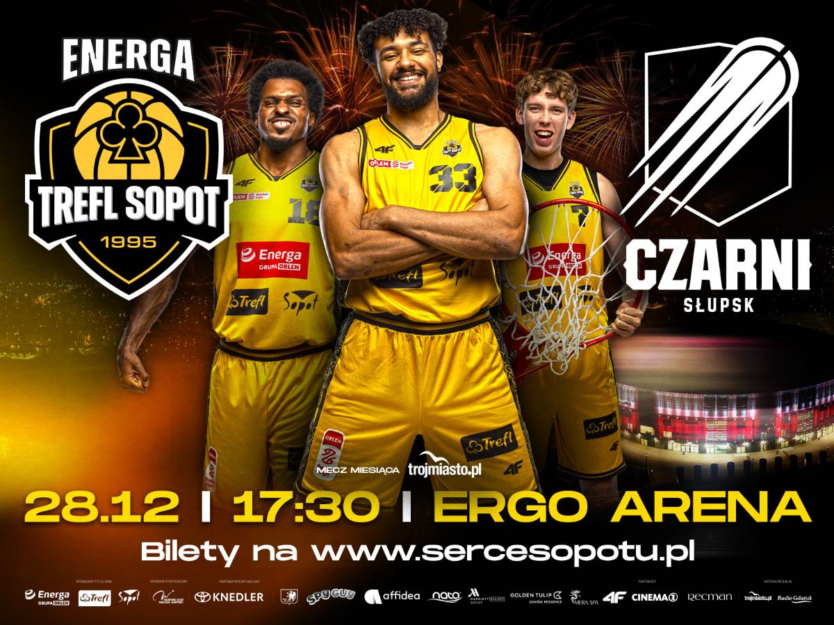 W niedzielę 28 grudnia o 17:30 w ERGO ARENIE koszykarze Energi Trefla Sopot zagrają z Energą Czarnymi Słupsk. Obie drużyny wciąż walczą o udział w przyszłorocznym Pucharze Polski, a zwycięstwo w prestiżowej rywalizacji może im w tym bardzo pomóc. Pomóżmy sopocianom przechylić szalę zwycięstwa na swoją stronę i podziękujmy za grę w medalowym roku 2025!