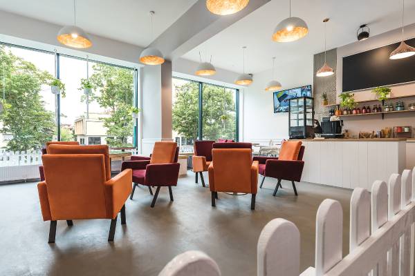 Nie zapomnieliśmy też o strefie kawiarnianej, w której na małych i dużych czeka pyszne menu. Przytulna kawiarnia i przestronna sala zabaw umożliwia organizację niezapomnianych urodzin.