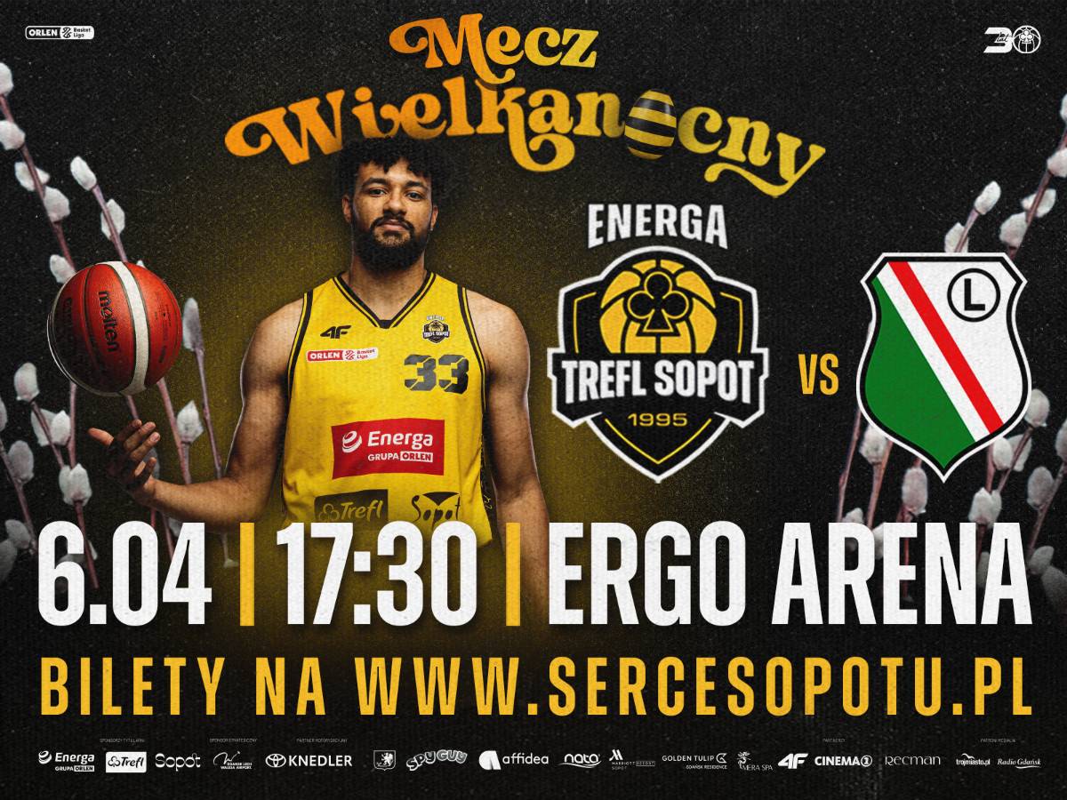 W poniedziałek 6 kwietnia o 17:30 drużyna Energi Trefla Sopot podejmie na własnym parkiecie Legię Warszawa. W tym sezonie z aktualnym mistrzem Polski mierzyliśmy się już trzykrotnie i za każdym razem górą byli żółto-czarni. Głośnym dopingiem pomóżmy im przedłużyć dobrą serię!